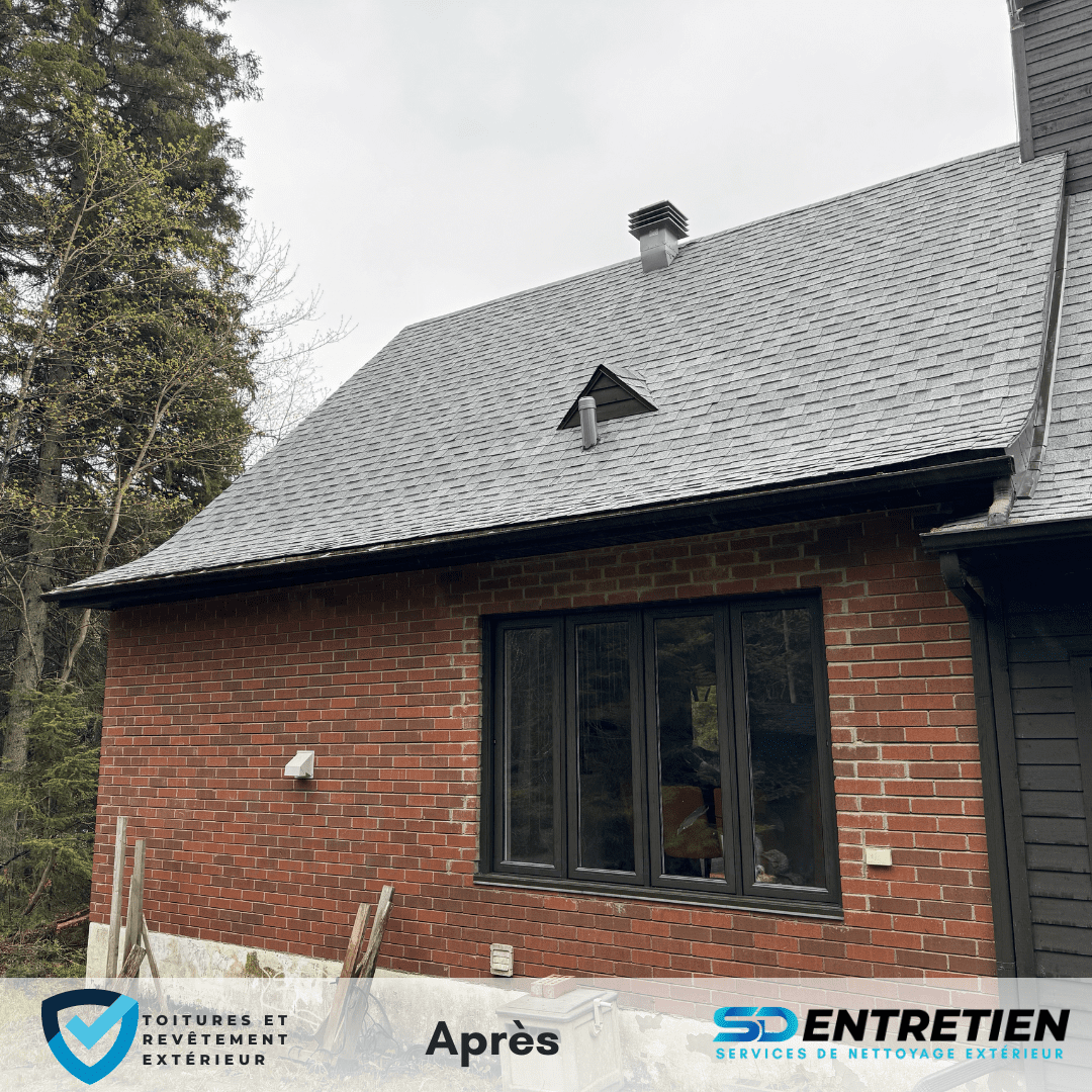 - Toitures en Bardeaux d’Asphalte: Nous retirons délicatement la saleté et les organismes vivants sans endommager les bardeaux, prolongeant ainsi la vie de votre toit.